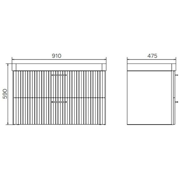 Габариты тумбы с раковиной (ШхВхД): 910х590х475 мм.
