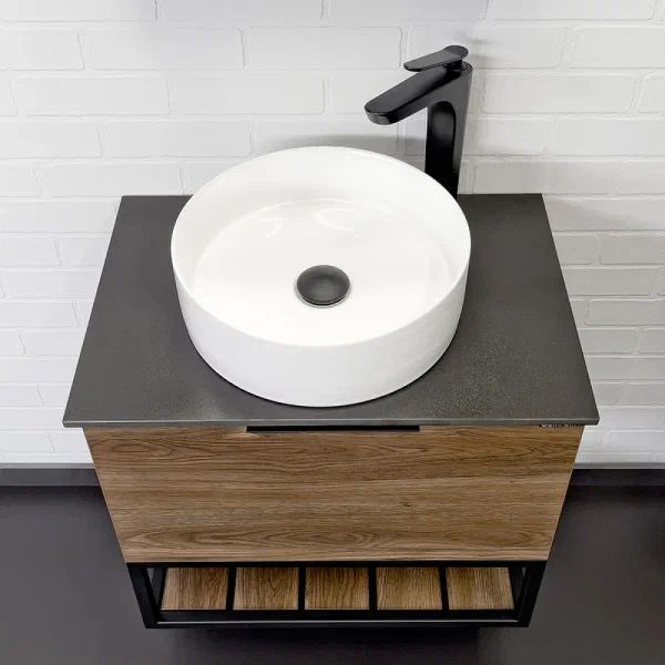 Тумба с раковиной Comforty Порто 00-00010676 60 см Дуб темно-коричневыйПодвесная тумба-умывальник в стиле лофт Порто 60 с одним выдвижным ящиком оснащенным системой плавного закрывания и нижней полкой открытого хранения для полотенец. В основе тумбы - каркас из стального профиля окрашенный в черный цвет.