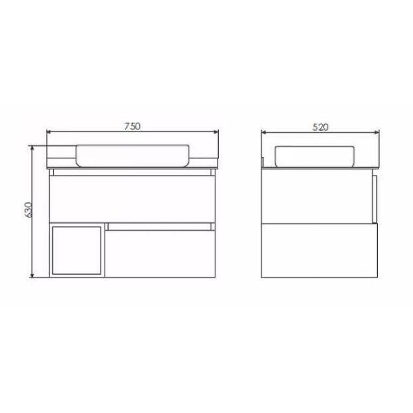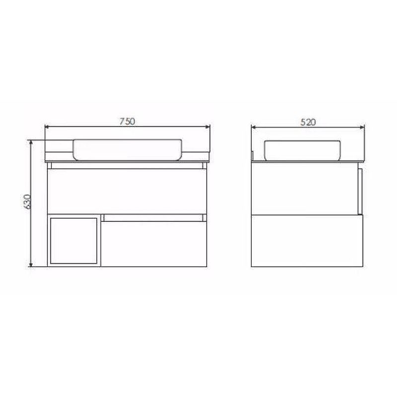 Габариты тумбы с раковиной (ШхВхД): 750х630х520 мм.