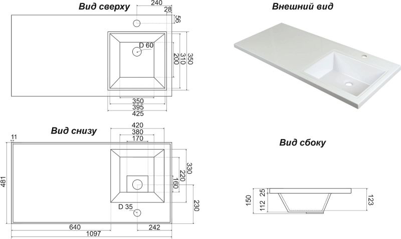 • Размеры (Ш Г): 109,7x48,1 см