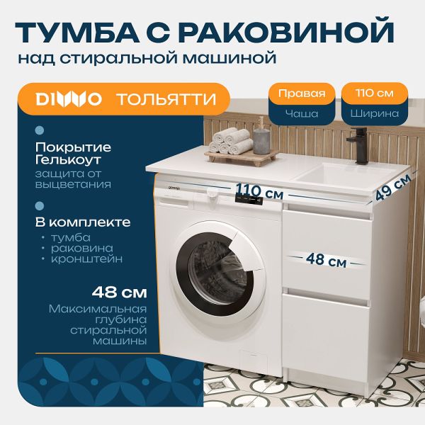 • Подходит для установки рядом со стиральной машиной