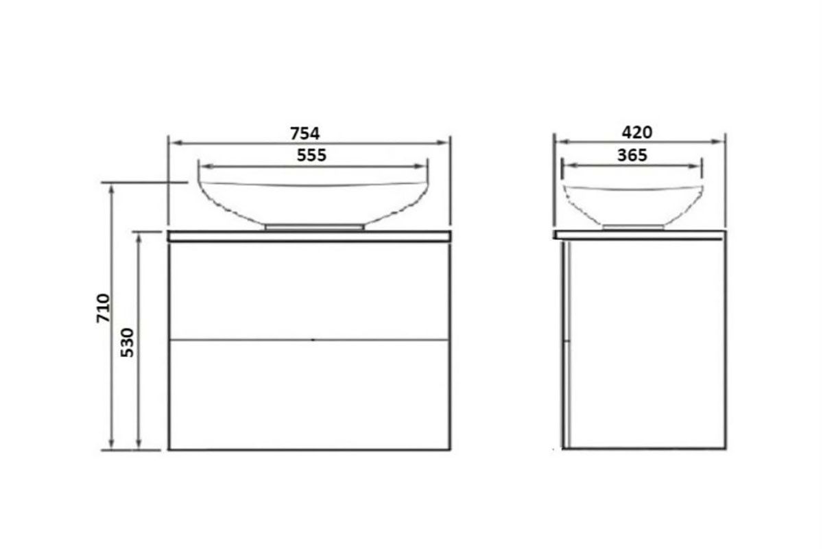 Подвесная тумба с раковиной-чашей и стеклянной столешницей, с двумя выдвижными ящиками. Предназначена для использования в ванных комнатах с повышенной влажностью. Система Push to Open: ящики открываются нажатием на них. Высокое качество сборки, материалов и фурнитуры. Корпус и фасад: МДФ, плёнка ПВХ белая глянцевая. Раковина накладная (глубина 10 см) - фаянс. Столешница: стекло окрашенное.