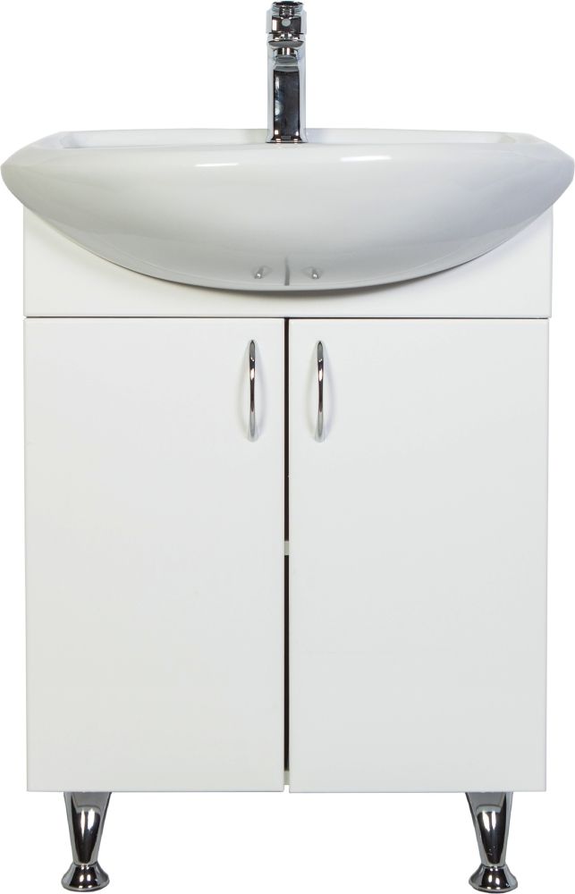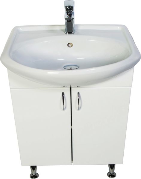 Напольная тумба с раковиной. Дверки c механизмом доводчика, обеспечивающим плавное закрывание. Фасад МДФ в пленке, цвет белый глянец. Корпус ЛДСП - белый глянец. Раковина - фарфор. Фурнитура в цвете хром. В комплекте н-р ножек и внутренняя полочка. Зеркальный шкаф для комплекта (арт. LA-60TUW+RA) приобретается дополнительно.