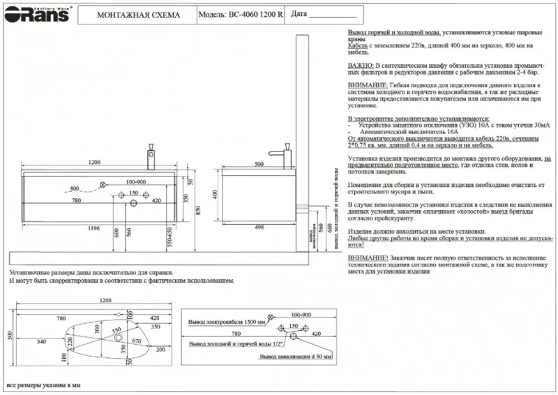 Тумба с раковиной Orans BC-4060-1200R - это изысканное решение для вашей ванной комнаты, сочет... Подробнее