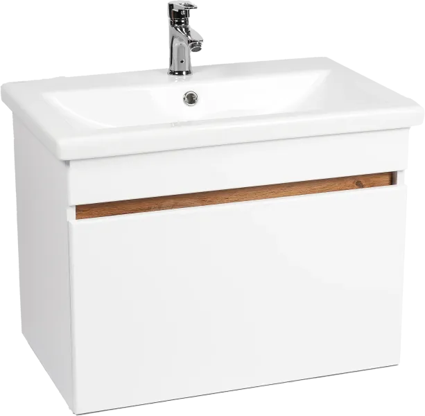 Тумба с раковиной VIANT Мальта 70 подвесная, белая, дуб вотан, 1 ящик купить