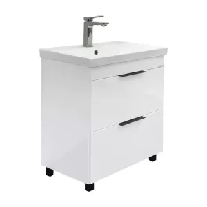 Тумба-умывальник Comforty Кама-60Н белый глянец с раковиной Comforty CF19696BX-60