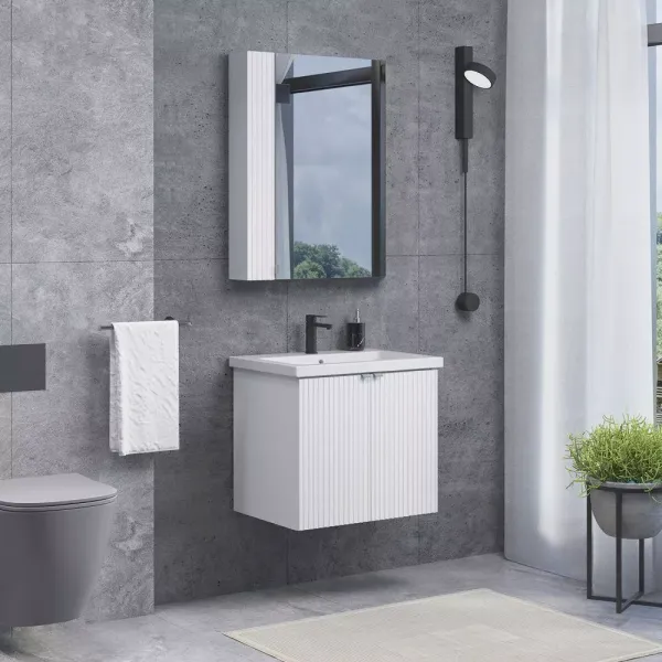 Тумба-умывальник Comforty Лима-60П белый матовый с раковиной Como 60