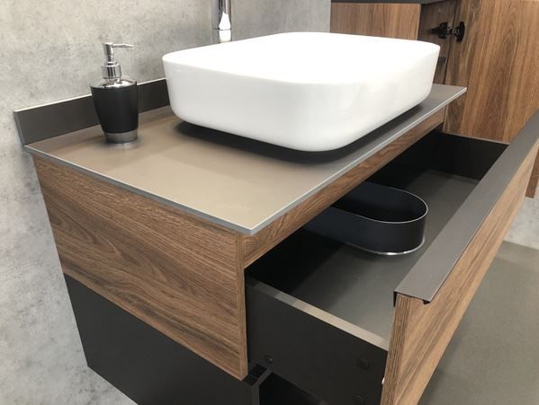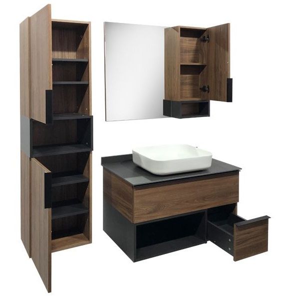 COMFORTY. Тумба-умывальник "Штутгарт-90" дуб тёмно-коричневый с черной столешницей c раковиной COMFORTY T-Y9378Тумба с раковиной