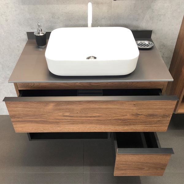 Тумба-умывальник COMFORTY Штутгарт-90 00-00002868, дуб тёмно-коричневый с черной столешницей c раковиной COMFORTY T-Y9378 купить