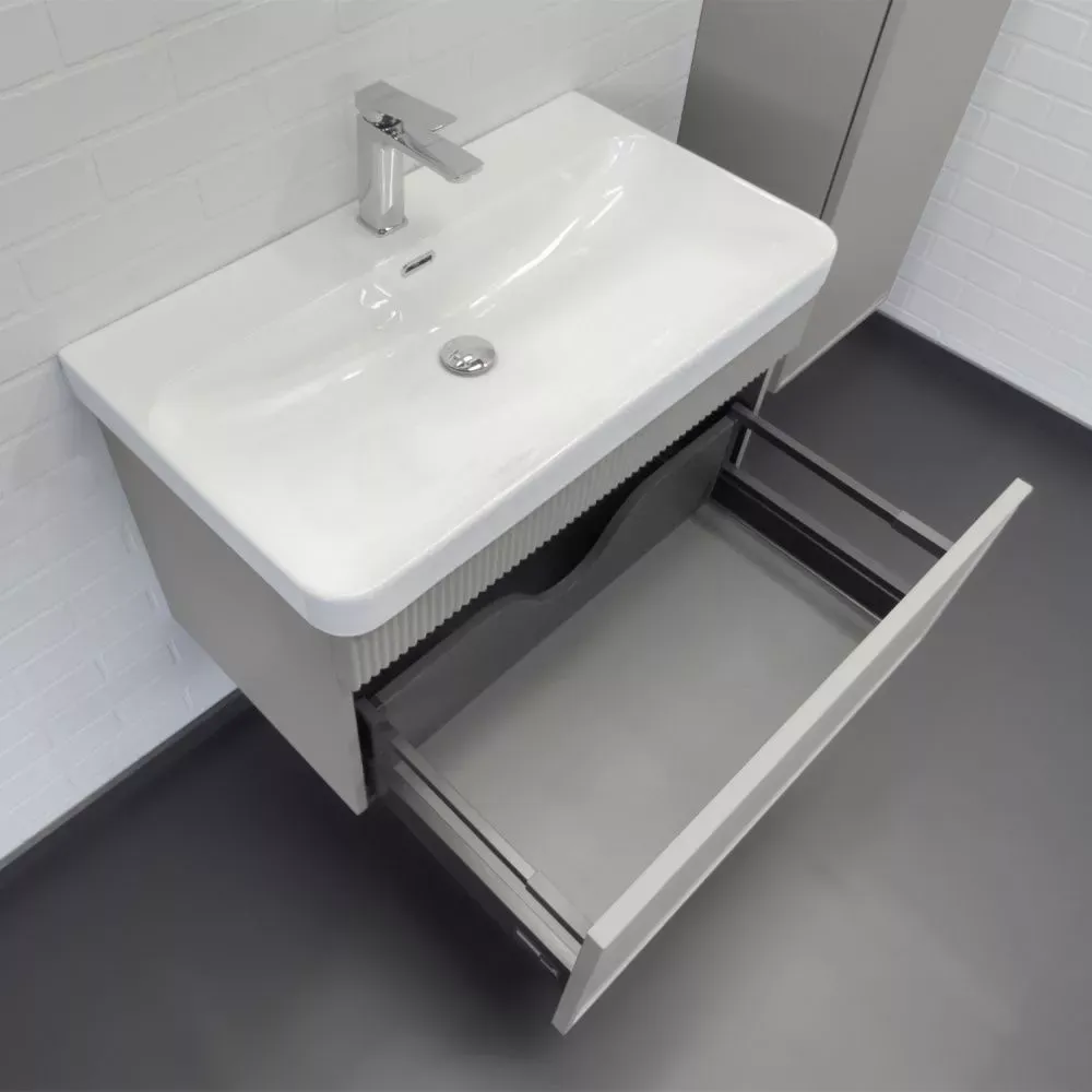 Тумба-умывальник для ванной Comforty Мадрид-80М серый шёлк с раковиной Comforty CF19595BX-80