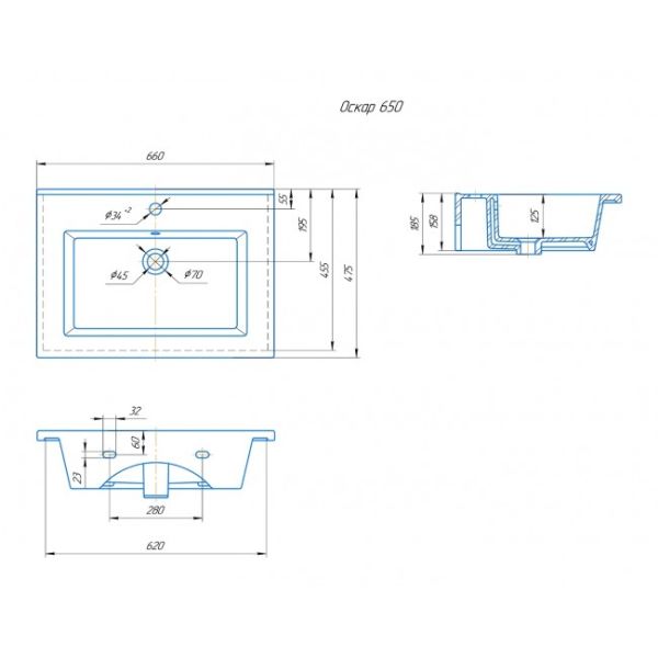 УМЫВАЛЬНИК RUNO мебельный Kirovit Оскар 65 (00-00001021) купить