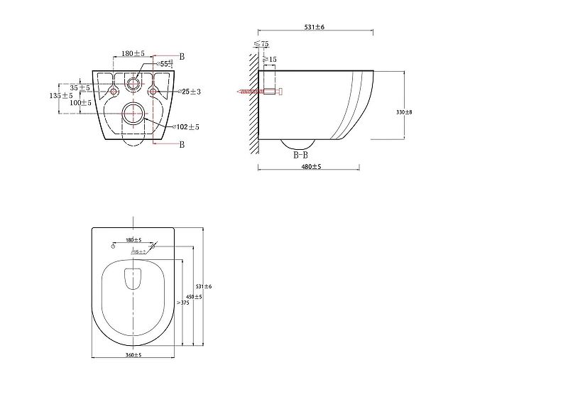 • Прилегание унитаза к стене: