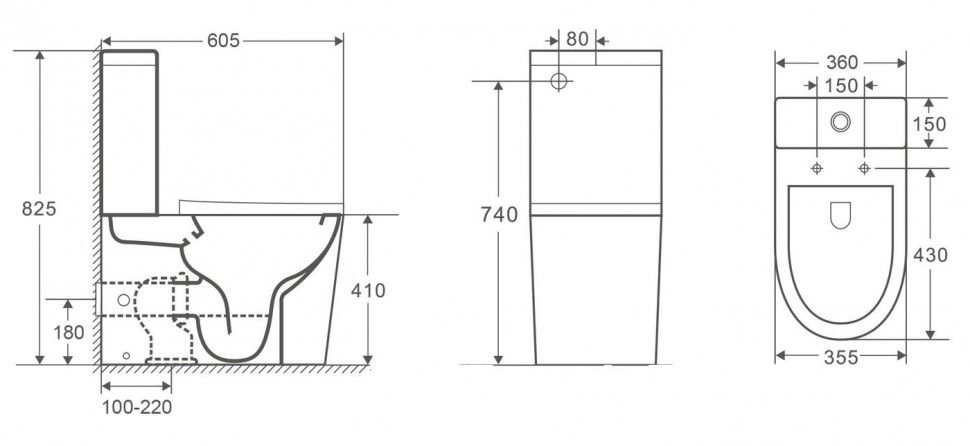 • Прилегание унитаза к стене: