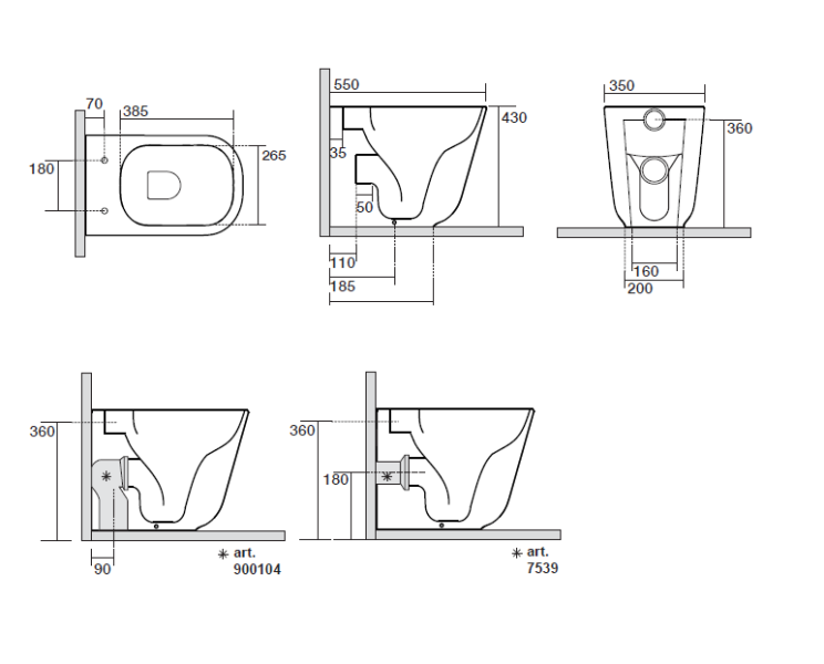 Прилегание унитаза к стене:вплотную