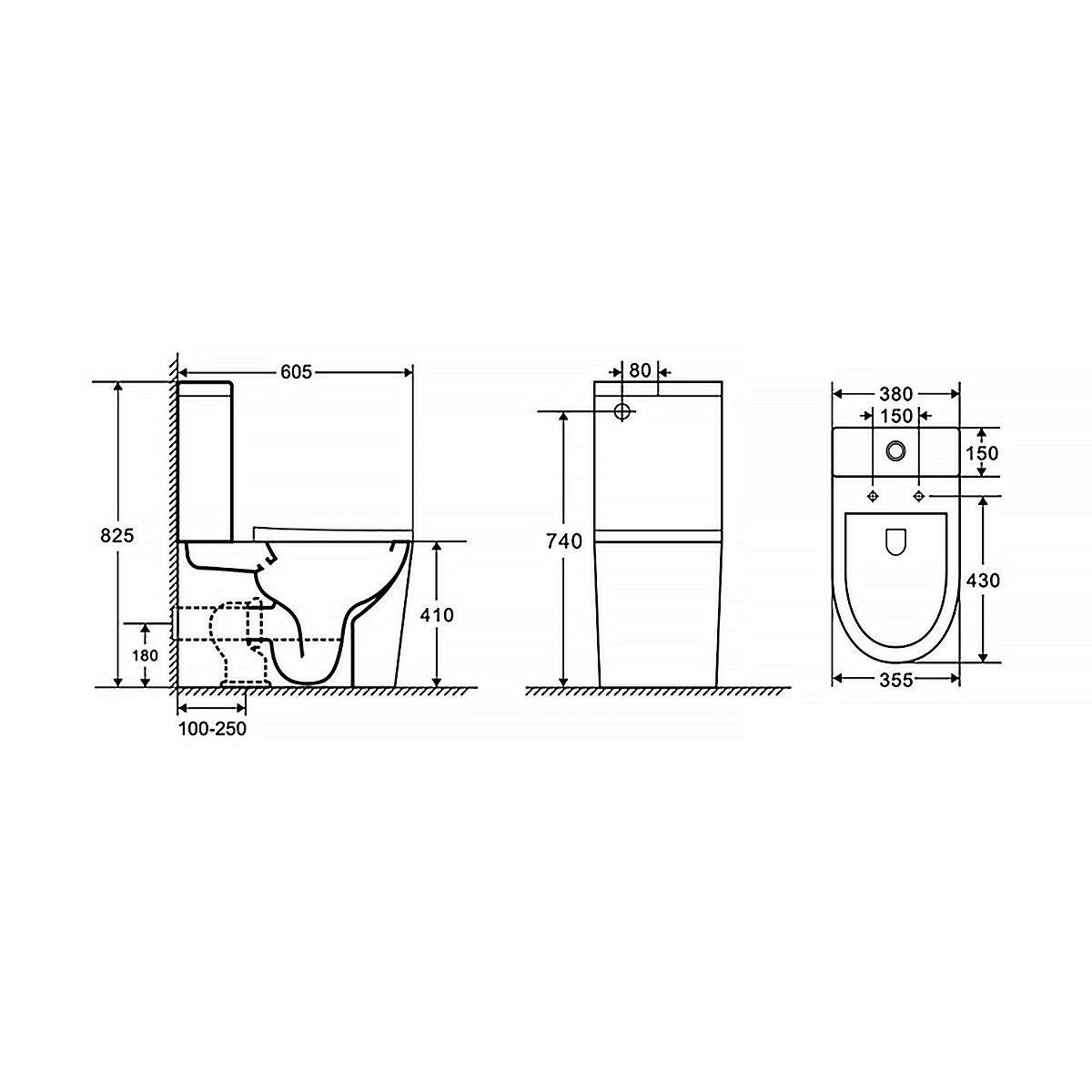 • Прилегание унитаза к стене: