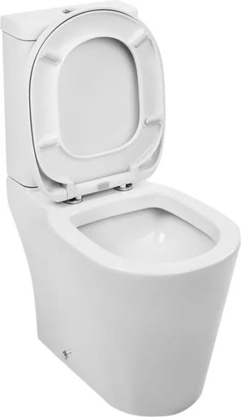 Унитаз-компакт с сиденьем из дюропласта с функциями Soft Close и Easy Fix, горизонтальный выпуск, двухуровневая водосливная арматура с кнопкой 38 мм. Упаковка: картонная коробка.