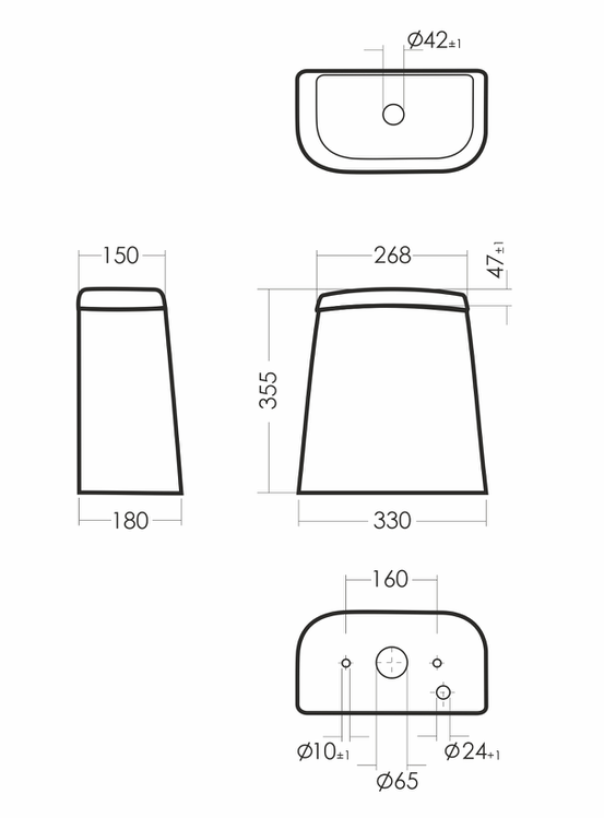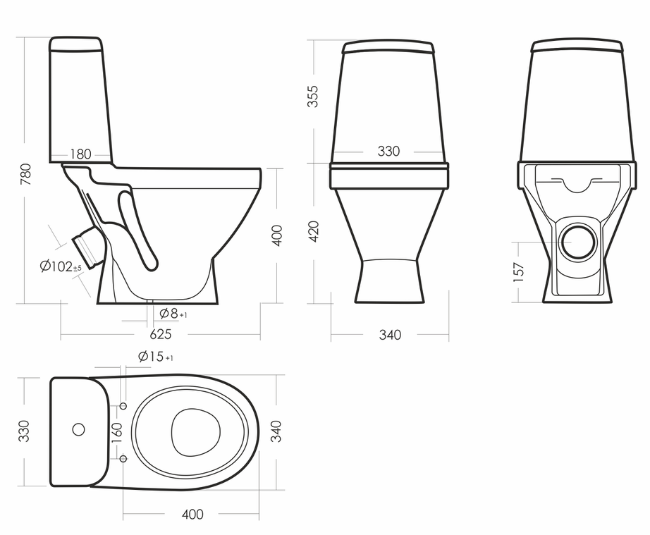 Размеры унитаза-компакта: 340 x 625 x 780