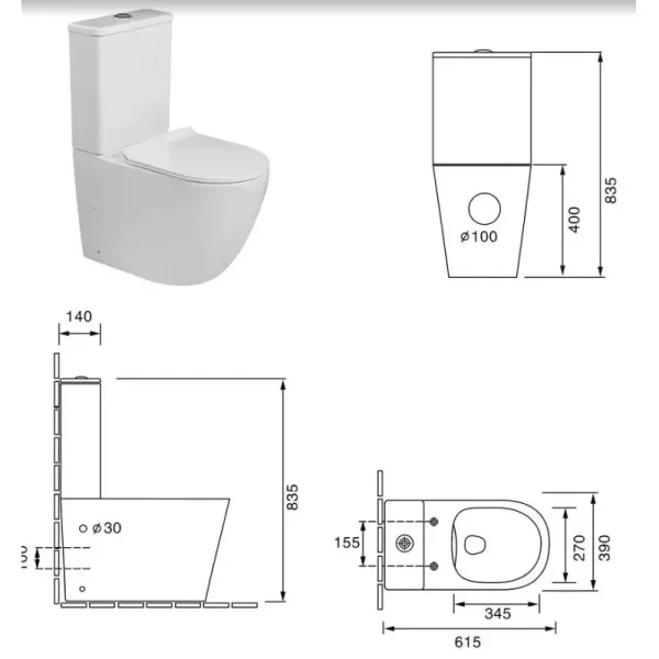 Унитаз-компакт безободковый Milleau Ferme MYL2055GW, крышка микролифт, цвет белый