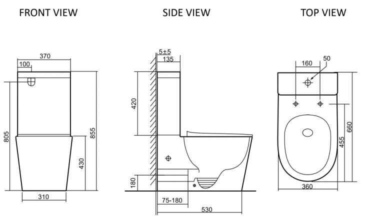• Прилегание унитаза к стене: