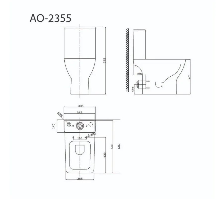 • Прилегание унитаза к стене: