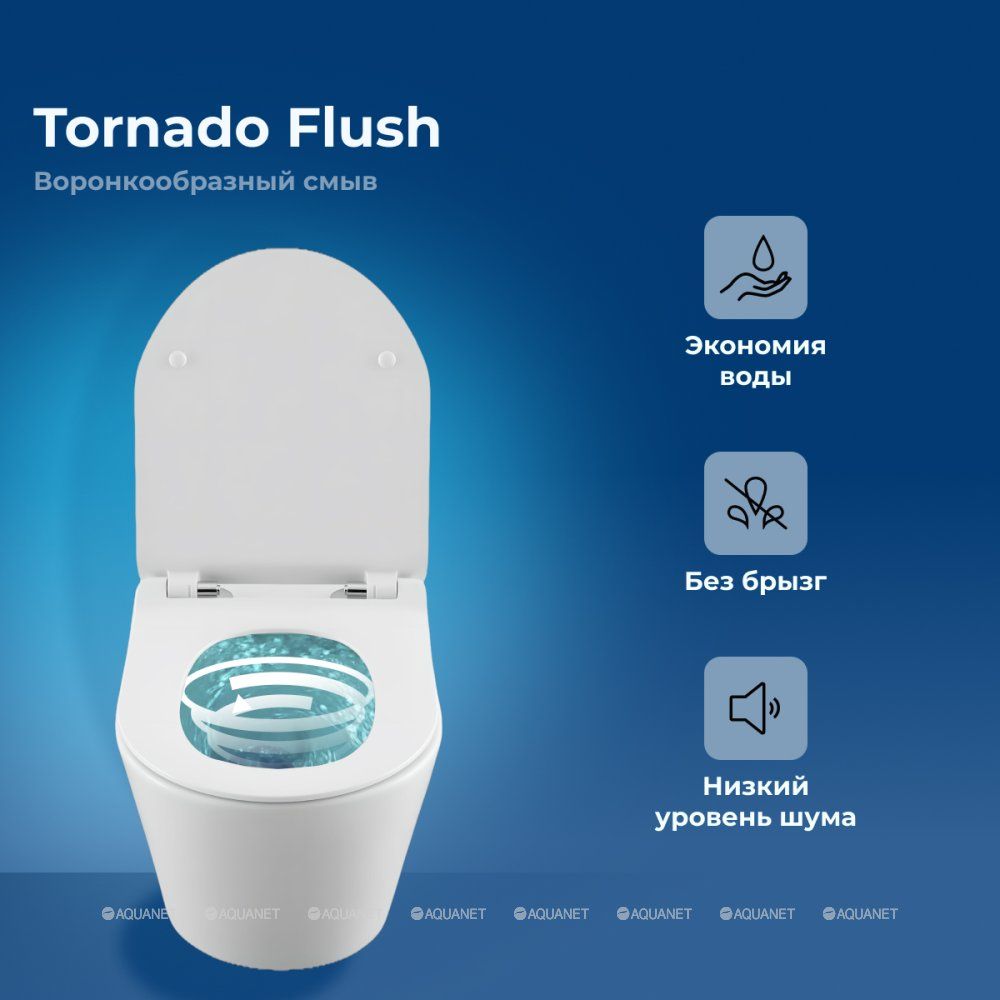 Унитаз подвесной Aquanet Smart W Tornado – это не просто сантехнический прибор, а настоящий шедевр инновационного дизайна и функциональности. Оснащённый самой эффективной системой смыва TORNADO, он обеспечивает мощный и при этом экономичный уход за чистотой. Уникальная конструкция, создающая эффект водоворота, позволяет воде стремительно убирать все загрязнения, что гарантирует полный уход за внутренней поверхностью унитаза.