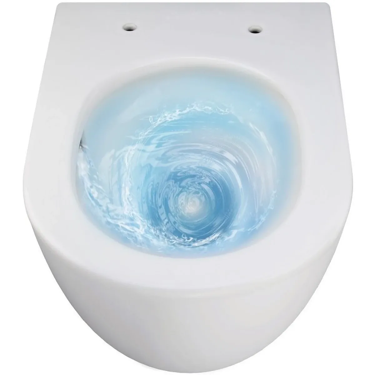 Эффективный спиралевидный смыв создает водоворот,который образуется при выбросе воды из отверстия, размещенного в верхней части чаши полностью омывает всю внутреннюю поверхность унитаза . Конструкция чаши и направление потока смыва исключают выплескивание воды.