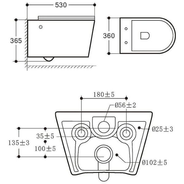 • Прилегание унитаза к стене: