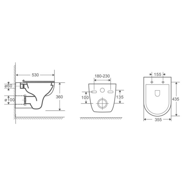• Прилегание унитаза к стене:
