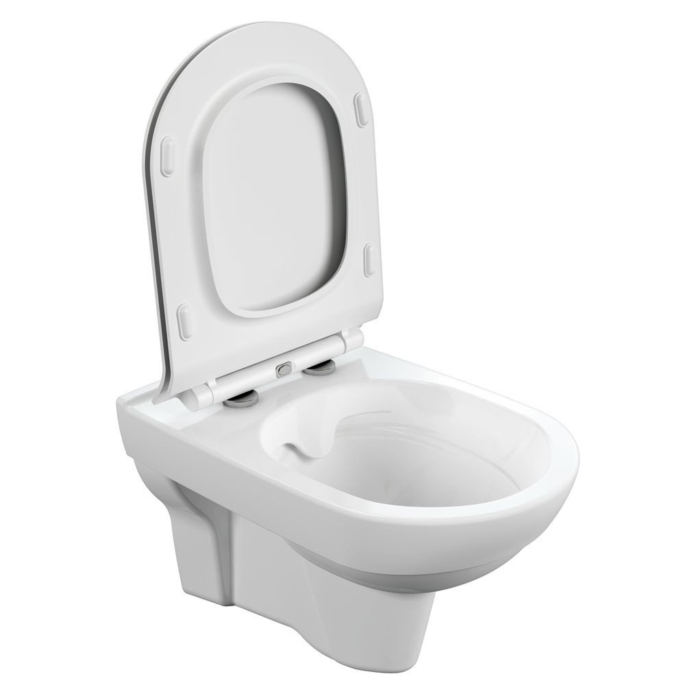 Безободковый подвесной унитаз с ультратонким, антибактериальным сиденьем с плавным закрыванием и легкосъемным механизмом