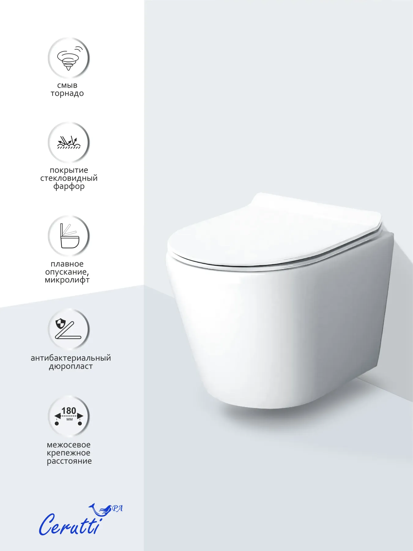 Унитаз подвесной Ceruttispa LUIGI Aria Tornado CT11101 безободковый со смывом торнадо Подробнее