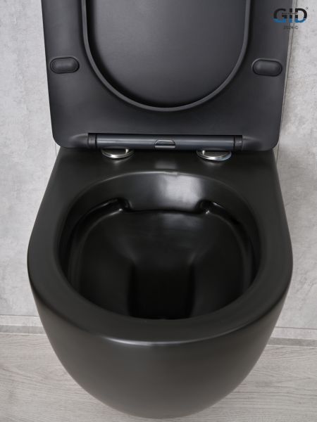 Convexo — коллекция округлых унитазов и биде, идеально подходящих для современных интерьеров. Испанское качество и соответствие европейским нормам — основные черты серии. Подвесной безободковый унитаз GiD Bm2198 - модель с горизонтальным выпуском выполнена из мелкопористой керамики в черном матовом цвете. Оснащена быстросъёмным сиденьем из дюропласта с функцией микролифта, обеспечивающей плавное и бесшумное опускание крышки. Благодаря антигрязевому покрытию и воронкообразной овальной чаше унитаз обеспечивает высокий уровень гигиены и легкость ухода. Комплект: подвесной унитаз GiD Bm2198 с креплениями для скрытого монтажа; сиденье с креплениями.