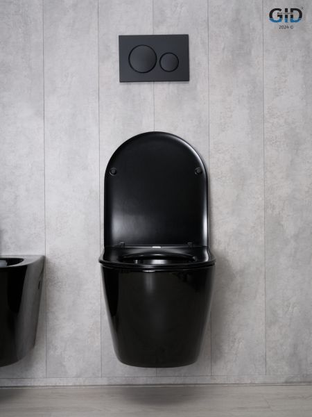 Convexo — коллекция округлых унитазов и биде, идеально подходящих для современных интерьеров. Испанское качество и соответствие европейским нормам — основные черты серии. Подвесной безободковый унитаз GiD Tr2198-18 - модель с горизонтальным выпуском выполнена из мелкопористой керамики в черном глянцевом цвете. Оснащена быстросъёмным сиденьем из дюропласта с функцией микролифта, обеспечивающей плавное и бесшумное опускание крышки. Благодаря антигрязевому покрытию и воронкообразной овальной чаше унитаз обеспечивает высокий уровень гигиены и легкость ухода. Комплект: подвесной унитаз GiD Tr2198-18 с креплениями для скрытого монтажа; сиденье с креплениями.
