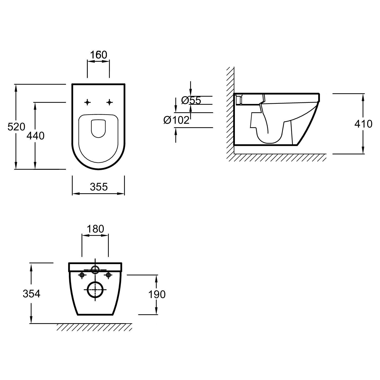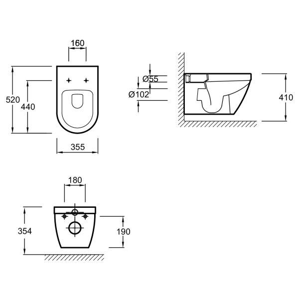 • Прилегание унитаза к стене:
