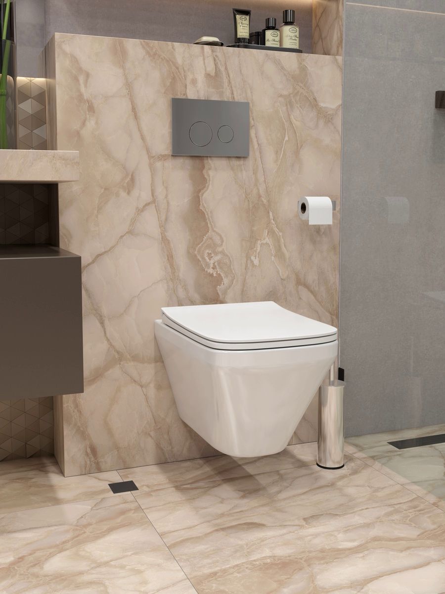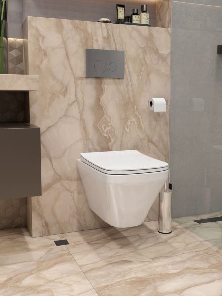 Представляем вашему вниманию подвесной унитаз Maretti Katrina KA10PBM20-844 в элегантном белом цвете. Он изготовлен из качественного санфарфора и отличается отсутствием ободка, что упрощает его гигиеническую очистку и позволяет избежать скопление загрязнений. Каскадная система смыва обеспечивает эффективное устранение загрязнений, а антивсплесковая система предотвращает появление неприятных брызг. Антигрязевое покрытие на поверхности унитаза помогает сохранить первозданный вид и упрощает уход за изделием. Данный унитаз комплектуется быстросъемным сиденьем с функцией микролифта, обеспечивающей плавное опускание сиденья без ударов. Межосевое расстояние для крепежных шпилек инсталляции составляет 18 сантиметров, что соответствует стандартам большинства инсталляций. Гарантия на этот товар составляет 10 лет, подтверждая его высокое качество и долговечность. Подвесной унитаз Maretti Katrina станет отличным выбором для тех, кто ценит стиль, комфорт и гигиену.
