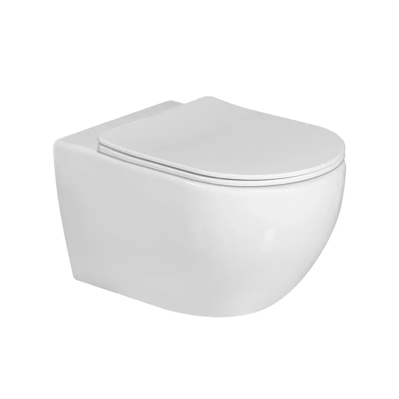 Безободковый: чаша без труднодоступных мест для уборки, полностью омывается водой