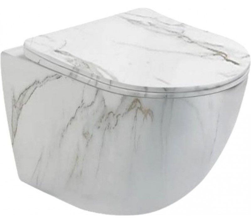 Безободковый подвесной унитаз SantiLine, сиденье микролифт, цвет серый мрамор, SL-5005MRB