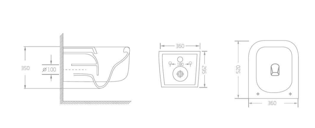 • Прилегание унитаза к стене: