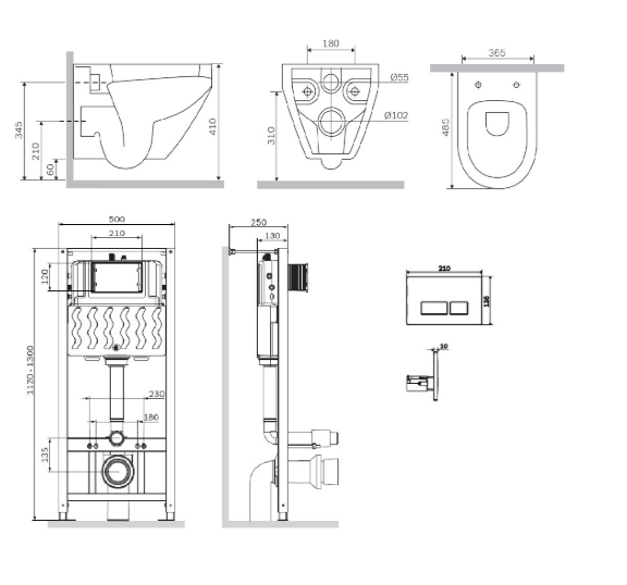 Полностью готовый к установке комплект: система инсталляции с клавишей, подвесной унитаз сиденьем.Не разборная рама из стального профиля выдерживает нагрузку до