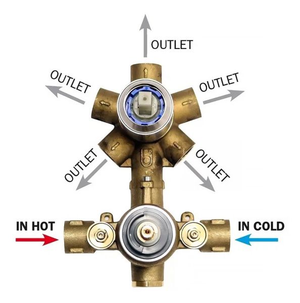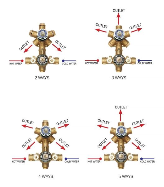Универсальная скрытая часть Bossini Z00125 на 2-5 выходов для термостатического смесителя купить