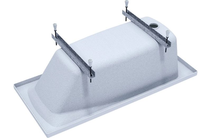 Состоит из двух поперечин из оцинкованного П-образного профиля и регулируемых по высоте ножек.