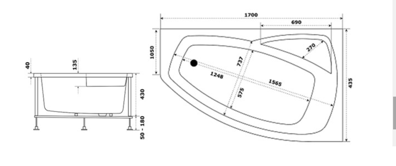 Ванна акриловая Bas Камея 170x105 левая купить