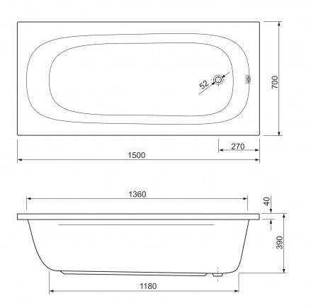 Ванна акриловая Cezares PIAVE-150-70-42-W37