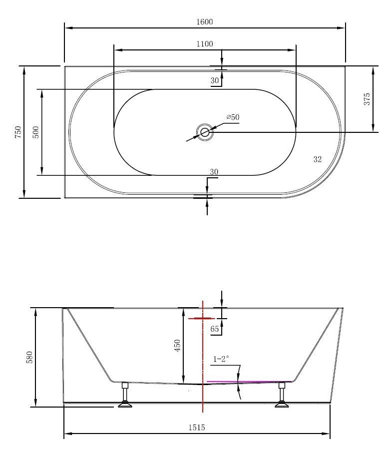 Ванна акриловая Vincea VBT-402-1600L, 1600*750*580, цвет белый, левая, щелевой перелив купить
