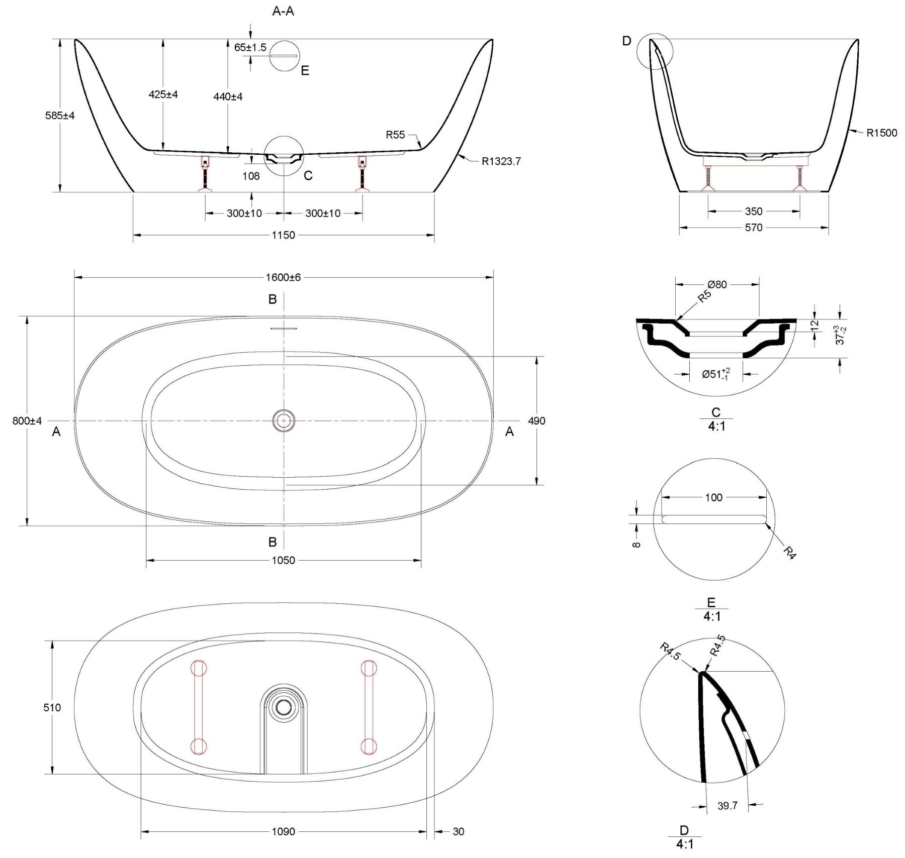 Ванна акриловая Vincea VBT-708-1600, цвет белый, щелевой перелив