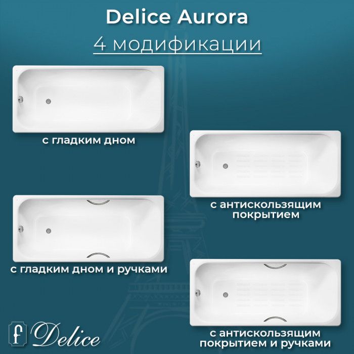 Ванна чугунная Delice Aurora DLR230604-AS 160x75 с антискользящим покрытием купить