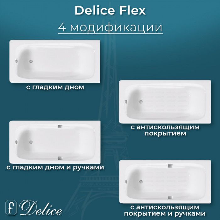 Ванна чугунная Delice Flex DLR230632-AS 180х85 с антискользящим покрытием купить