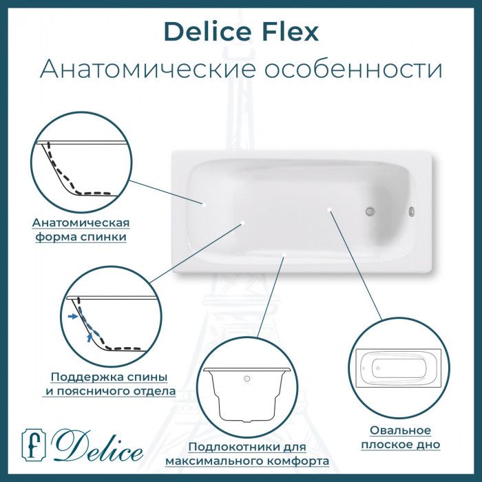 Ванна чугунная Delice Flex DLR230632R-AS 180х85 с отверстиями под ручки и антискользящим покрытием купить