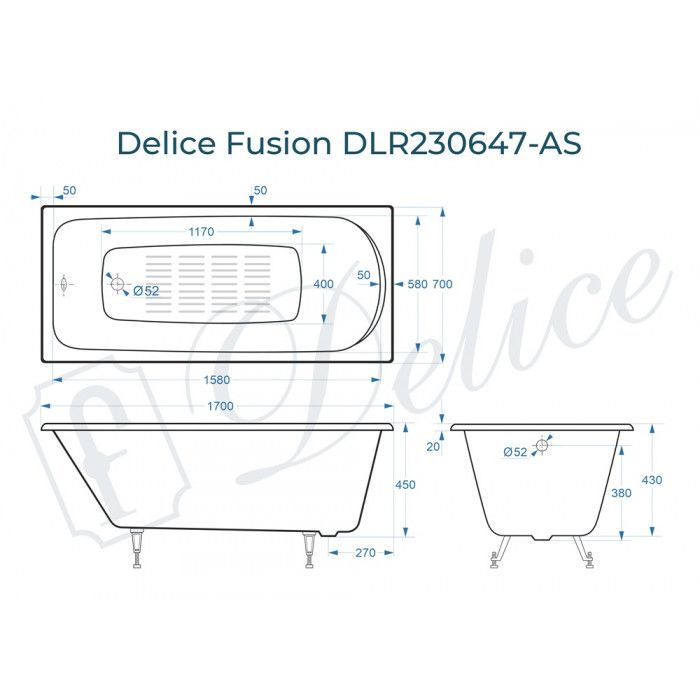 Ванна чугунная Delice Fusion DLR230647-AS 170х70 с антискользящим покрытием купить