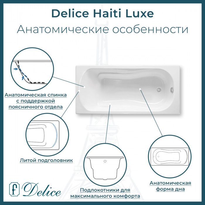 Ванна чугунная Delice Haiti Luxe DLR230636R-AS 150х80 с отверстиями под ручки и антискользящим покрытием купить