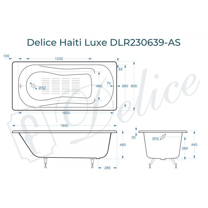 Ванна чугунная Delice Haiti Luxe DLR230639-AS 180х80 с антискользящим покрытием купить